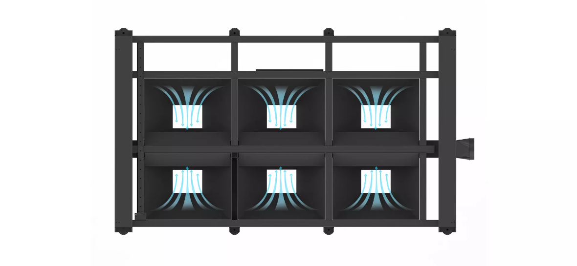 Az asztal szekcionált kialakítású a füst hatékonyabb elvezetéséhez.