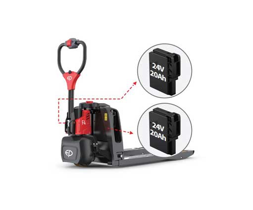 Az F4 a legjobb megoldás a manuális raklapemelő helyettesítésére, mivel a legköltséghatékonyabb kezelési megoldást kínál maximális rugalmassággal a konfigurációnak köszönhetően. Ez a modell alapfelszereltségként egy akkumulátorral és egy további rekesszel kerül szállításra, ahová második akkumulátor is elhelyezhető, hogy több munkakörnyezethez is illeszkedjen, a könnyű munkától a nehéz terhekig, a belső tértől a kültéri használatig.